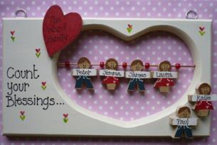 Claycrafts specialises in unique handpainted personalised gifts for all occasions from the popular wooden Count Your Blessings plaque shown to our range of birth and christening gift plates. Our designs have been sent all over the world and can be viewed/ordered online at www.handpaintedgifts.net.