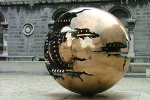 'Sphere With Sphere' is the name of the spectacular bronze Globe situated outside the Main Library in Trinity College Dublin.