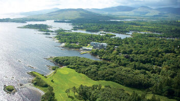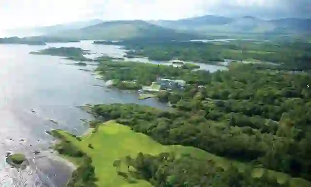 Luftbild des Parknasilla Resort, umgeben von Wäldern und Bergen in der Grafschaft Kerry. Luftbild des Parknasilla Resort, umgeben von Wäldern und Bergen in der Grafschaft Kerry.