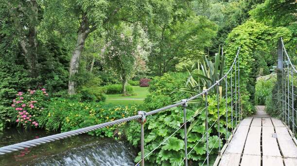 Dann machen Sie sich auf den Weg durch den ummauerten Garten, wo die Backsteinmauer die Sonnenwärme einfängt und die vielen Wildblumen gedeihen lässt. Spazieren Sie nun auf dem 1,4 km langen und vollständig zugänglichen Holzsteg zwischen den Baumwipfeln.