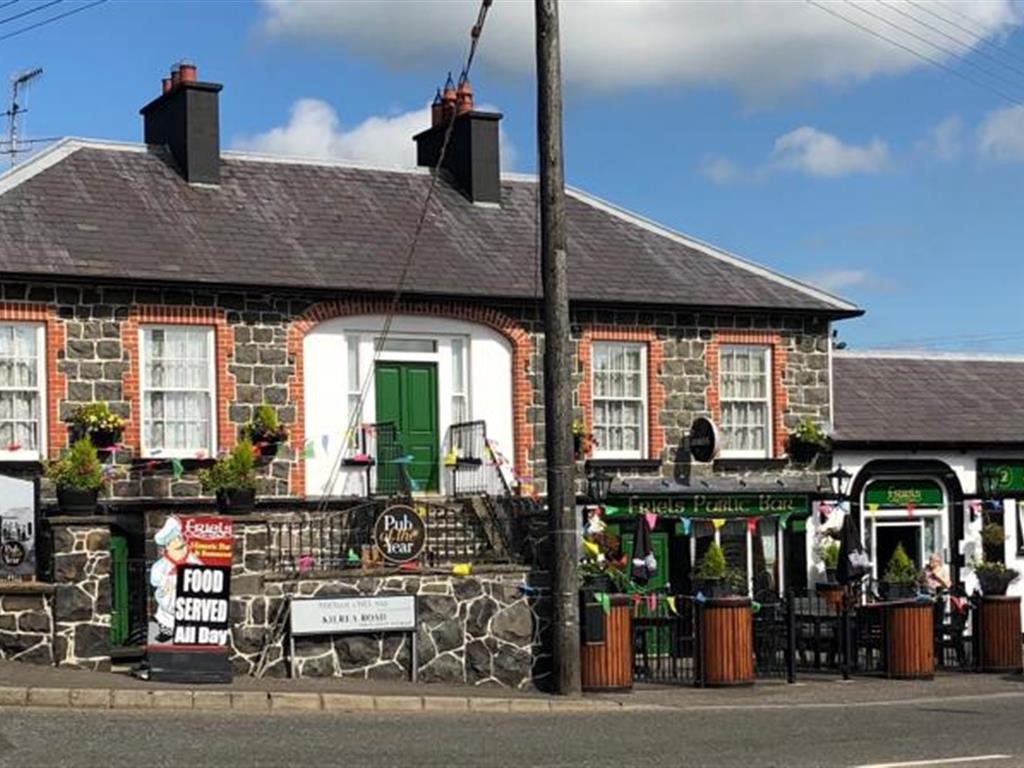 Friels è un bar e ristorante irlandese pluripremiato a conduzione familiare di quinta generazione, situato nel cuore della campagna di South Derry, nel villaggio di Swatragh. A metà strada tra Belfast e Derry, appena fuori dal Glenshane Pass. Il bar è di proprietà della famiglia da oltre cento anni. Friels è un pub con un soffitto in legno originale, un bancone bar decorato e un fuoco scoppiettante. Le pareti sono fiancheggiate da fotografie storiche e cimeli della Guinness: non passerà molto tempo prima che tu abbia voglia di una pinta di roba nera. È uno di quei posti con tutto il fascino di un "pub per vecchi" ma con il brusio dei cocktail del fine settimana, del pranzo domenicale in famiglia e del caffè. Il cibo di provenienza locale è servito dalle 12:00 7 giorni alla settimana. Prenota un tavolo per due nel loro accogliente spazio accogliente o incontra la tua famiglia nella loro luminosa sala da pranzo all'aperto. I pasti all'aperto sono disponibili nelle loro tre aree esterne, sia che tu chiami per 3 portate o solo un caffè veloce. Al Friels, l'accoglienza è calorosa come il fuoco di torba che arde nel focolare. Dove scorre la Guinness e vengono raccontate le storie, avrai davvero un senso di appartenenza da ogni centimetro di questa azienda a conduzione familiare.